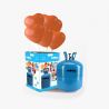 Plaats het opblaasventiel in de opening van de cilinder. Draai de bovenste kraan los. Steek de ballon in het mondstuk en druk op om het op te blazen.