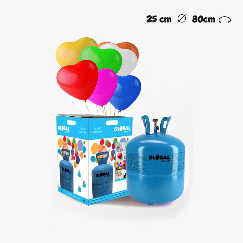 Inhoud: Helium fles + 30 hartballonnen.
